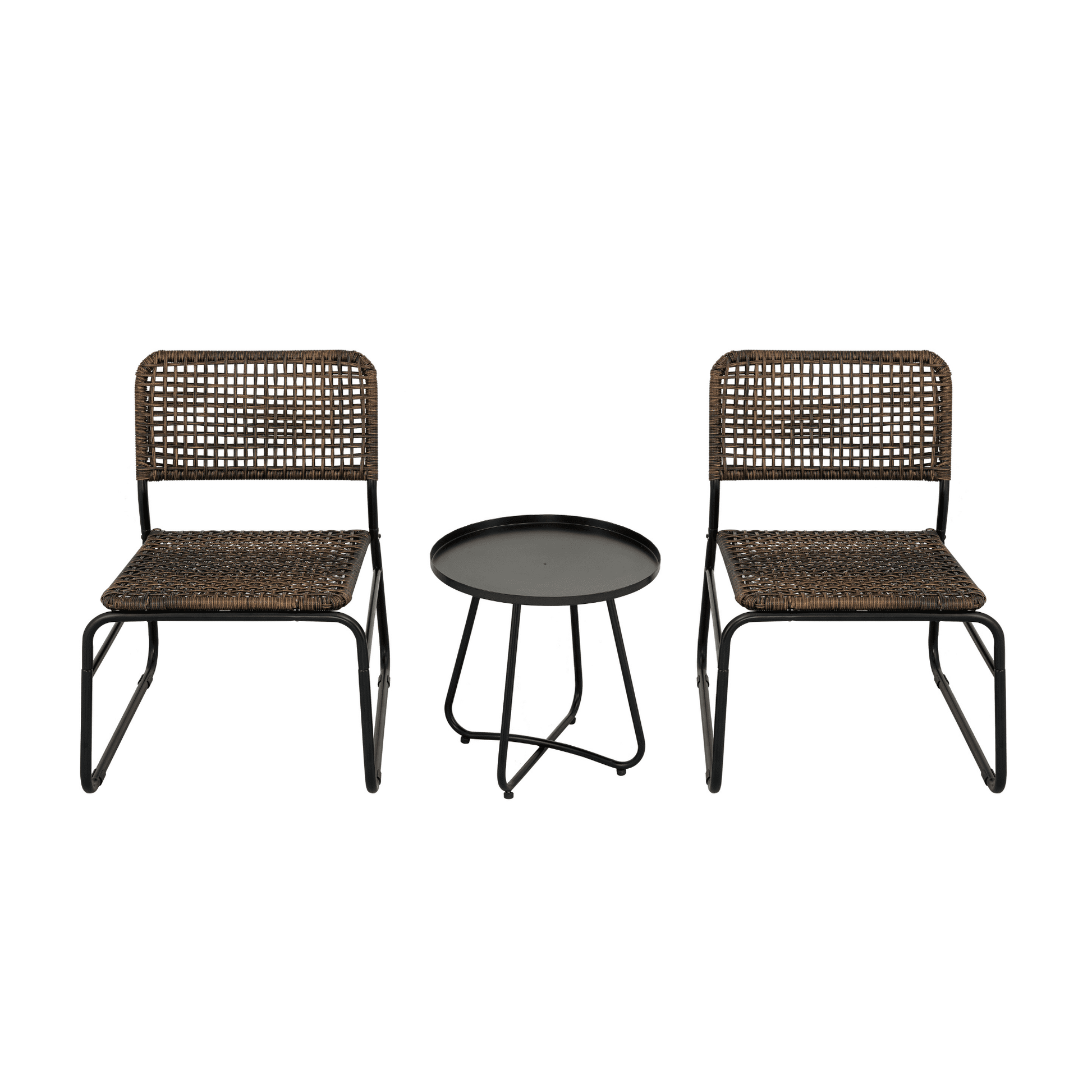 3 Piece Patio Furniture Set Mixture Pattern PE Rattan Steel Frame And Modern Round Table, Brown and Black