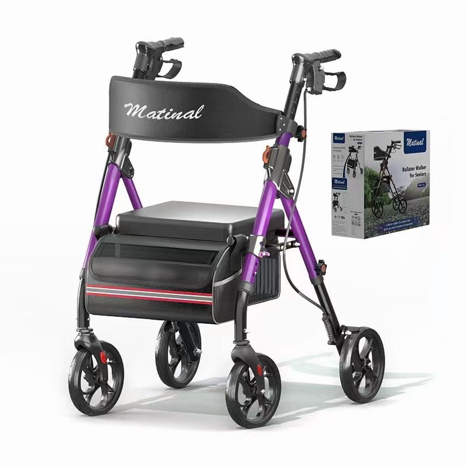 GAKMCIL Lightweight Foldable Rolling Walker, All-Terrain Mobility Walker with 6-Position Adjustable Height, Brake System, Double Storage Space, Backrest, 350lbs Load for Seniors and Adults (Purple)